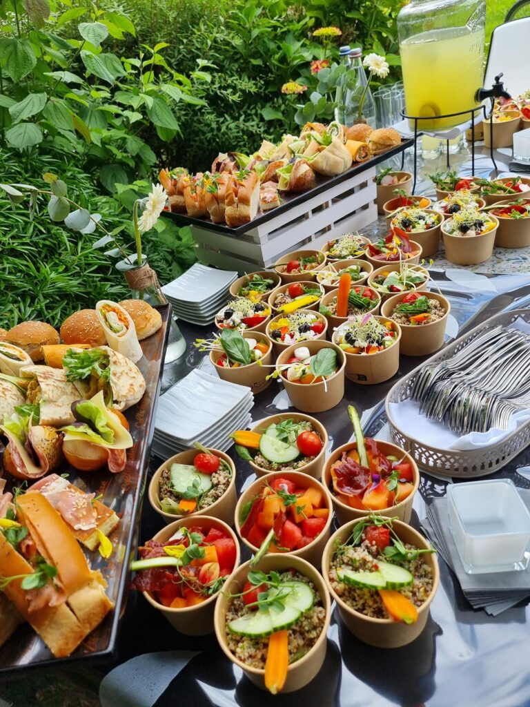 Notre équipe met un point d’honneur à vous accompagner dans l’organisation de votre réception. Nous adaptons nos propositions à vos besoins, que vous souhaitiez un cocktail chic et moderne ou un buffet convivial et généreux. Chaque détail est pensé pour vous offrir une prestation clé en main, où plaisir et qualité sont au rendez-vous.